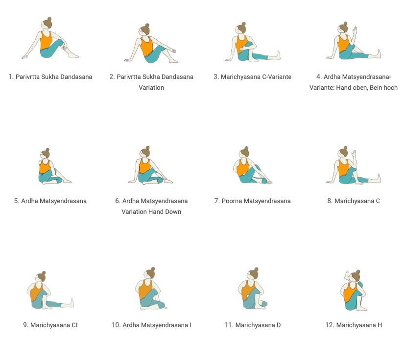 Ardha Matsyendrasana und Varianten: